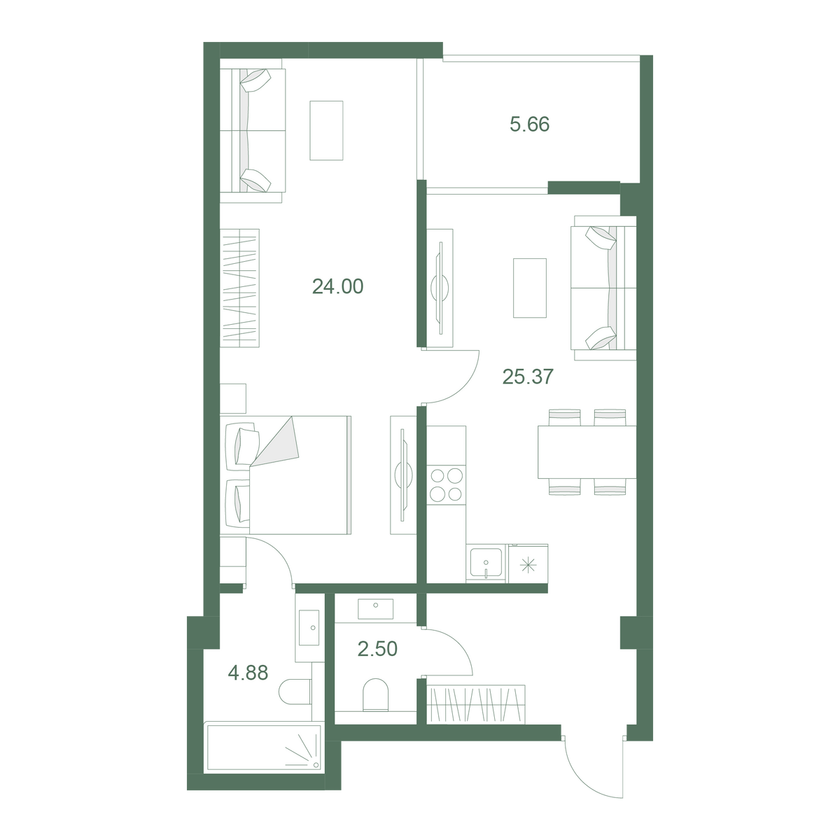 2-комнатный 62.41 м2