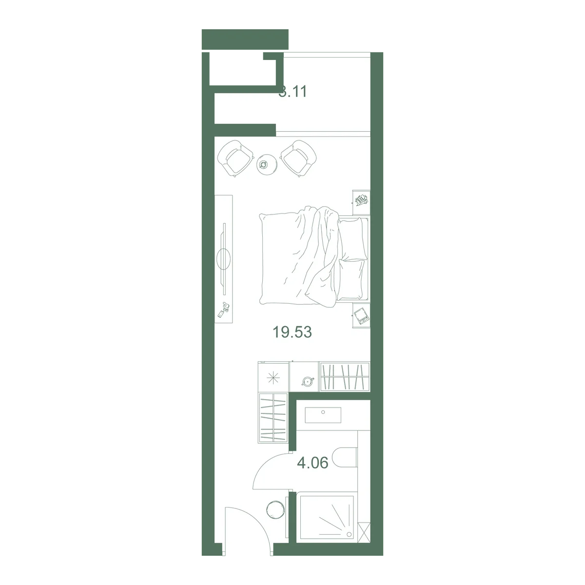 Студия 26.9 м