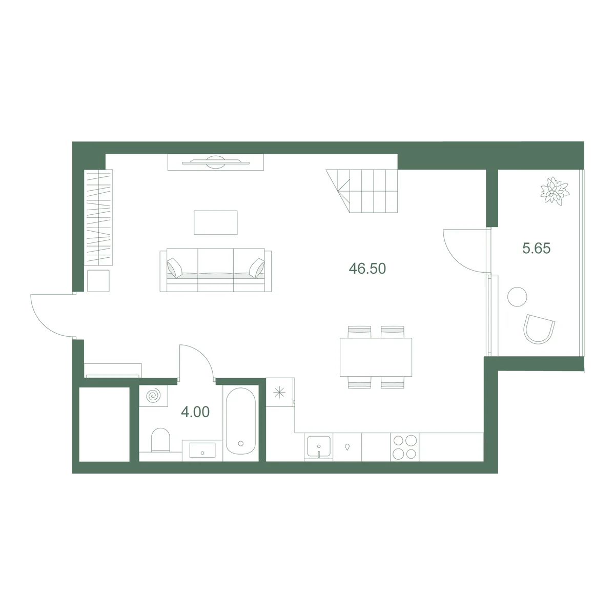 1-комнатный 75.6 м