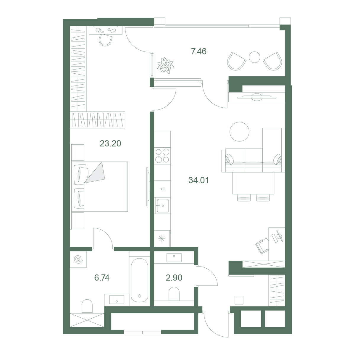 1-комнатный 75.2 м