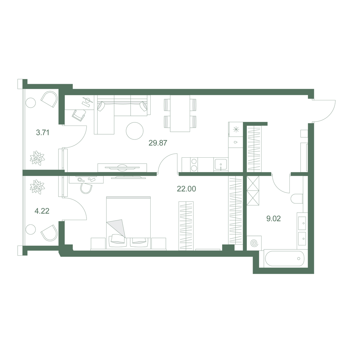 1-комнатный 71.4 м
