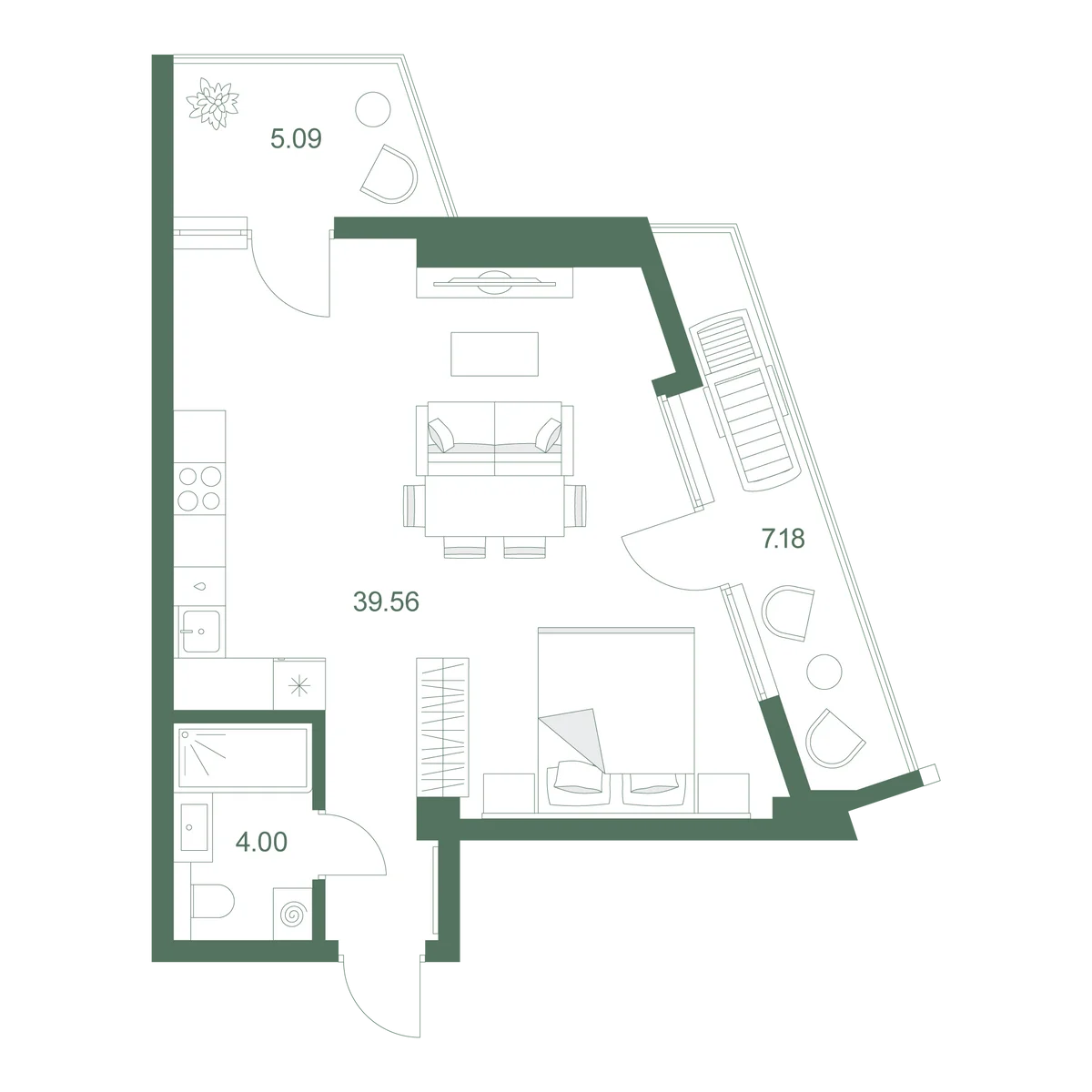 Студия 54.4 м