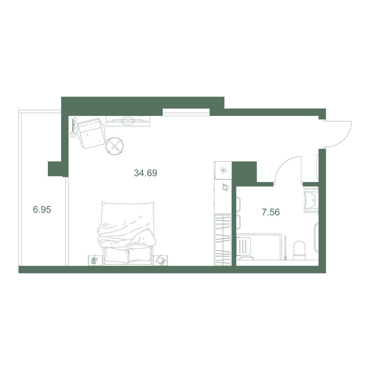 Студия 30.89 м