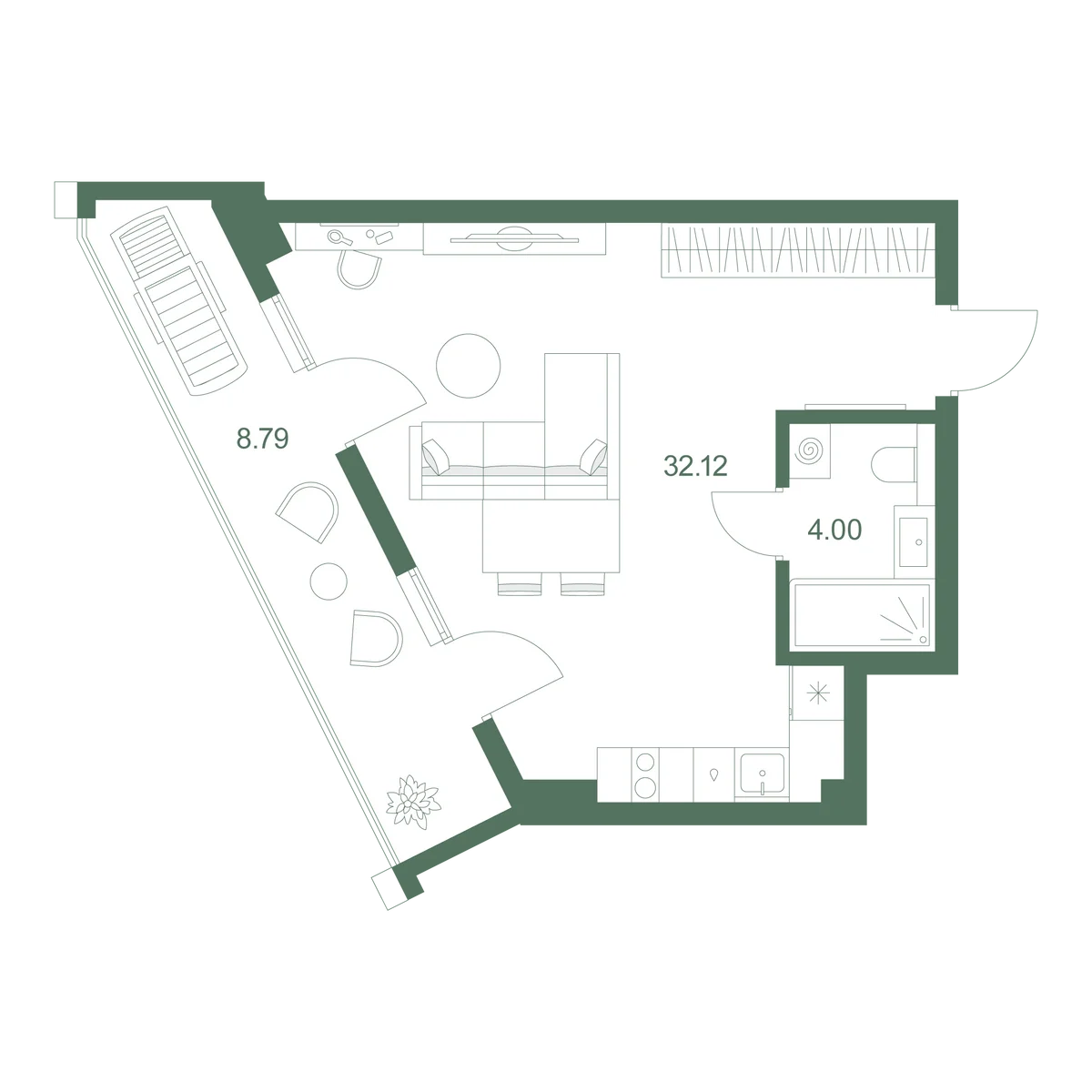 Студия 44.7 м